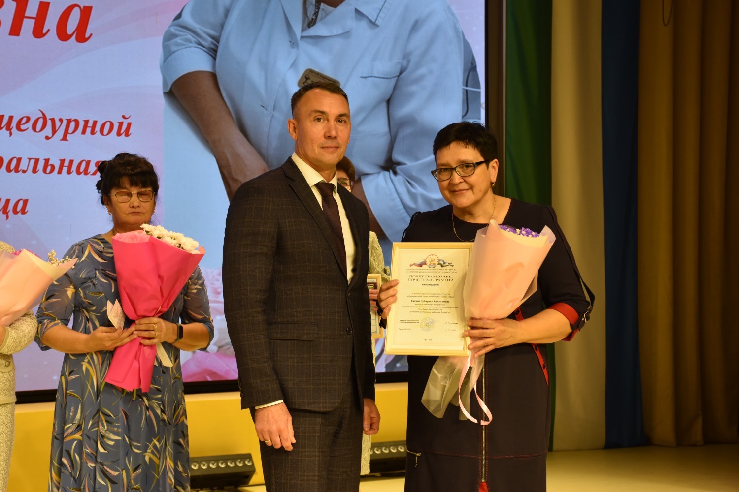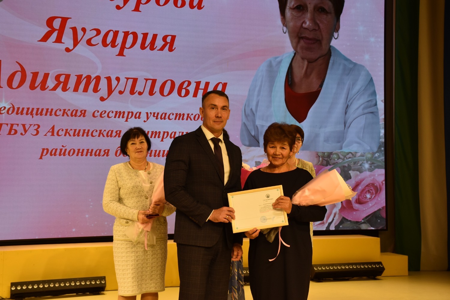 Почётной грамотой Министерства здравоохранения Республики Башкортостан — Гатина Зубарзят Хамзиновна, медицинская сестра процедурного кабинета Аскинской центральной районной больницы.