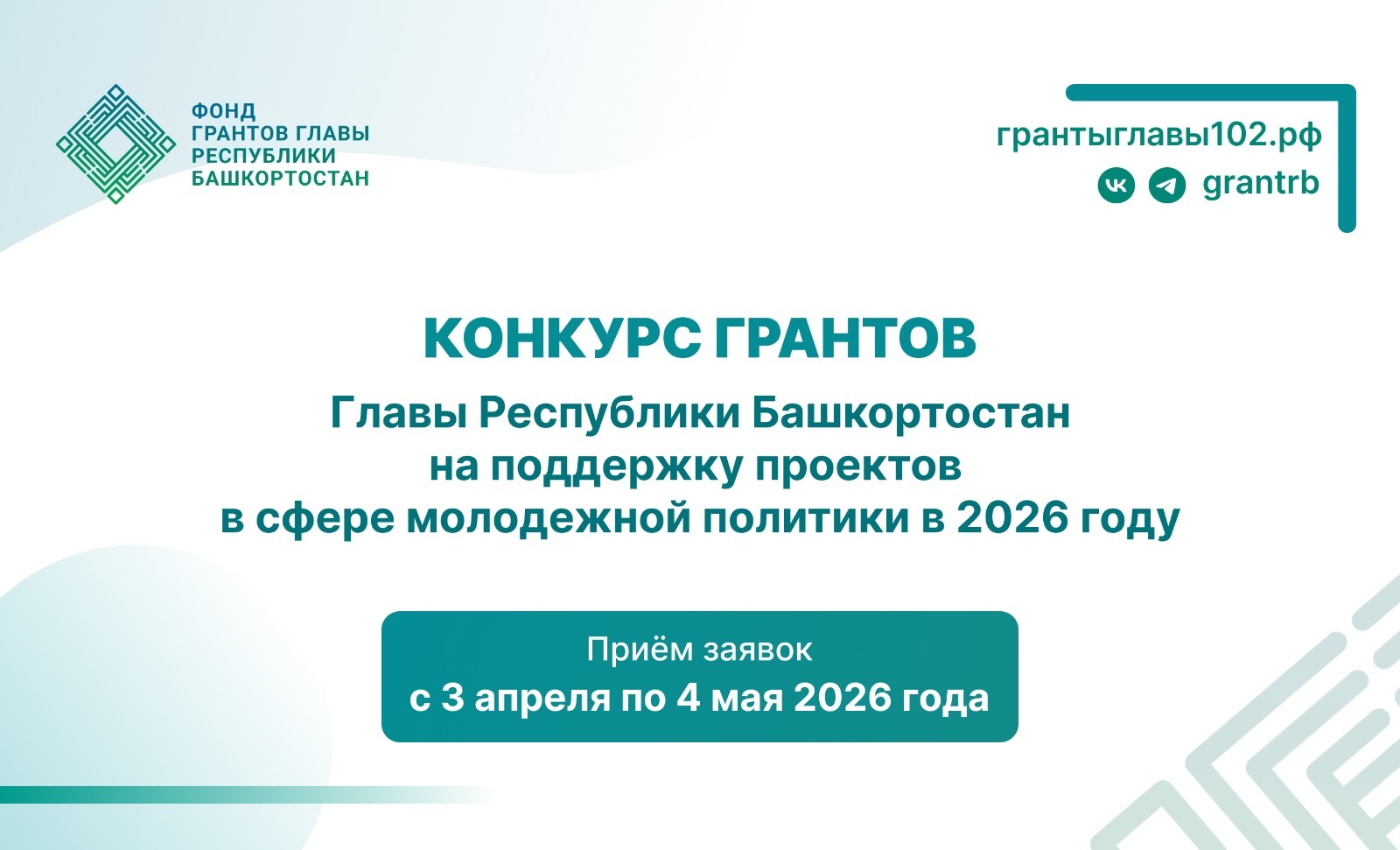 В конкурсе могут участвовать некоммерческие организации, зарегистрированные более одного года. Одна НКО может подать на участие в конкурсе не более одной заявки. Срок реализации проекта должен начинаться не ранее 1 августа 2026 года и завершаться не позднее 31 июля 2027 года. Одно из главных требований конкурса – целевой группой проекта должна быть молодежь в возрасте от 14 до 35 лет. По поручению Главы Республики Башкортостан Радия Хабирова второй год в грантовом конкурсе выделено отдельное направление для студентов – выходцев из республики, кто хочет реализовать социальный проект, популяризирующий родной регион. Подать заявку здесь могут некоммерческие организации, зарегистрированные в других субъектах России, а руководитель проекта является выходцем из Башкортостана, получающий высшее образование в другом регионе России. «В этом году направления конкурса расширены в соответствии с векторами, закрепленными в законе о молодежной политике. Это позволит охватить максимальный спектр инициатив – от патриотического воспитания до поддержки молодых семей. Также мы сохраняем курс, заданный Радием Фаритовичем Хабировым в 2024 году – поддерживаем наших студентов, которые получают образование в других регионах. Студенты из Башкортостана сегодня учатся по всей стране, и для нас важно дать им возможность реализовывать значимые проекты сохраняя связь с малой Родиной», – прокомментировала генеральный директор Фонда Люция Сайфуллина. Данный конкурс проводится Фондом четвертый год. За это время было получено 415 заявок, из которых было поддержано 64 на общую сумму 90 млн. рублей. Прием заявок продлится до 4 мая, 17.00 по местному времени на официальном сайте грантыглавы102.рф. Также на сайте можно ознакомиться с подробной информацией о требованиях к участникам конкурса, условиях и порядке предоставления грантов. 6 апреля в Доме молодежи по адресу г. Уфа, ул. Пушкина, 86, пройдет обучающий семинар для потенциальных участников конкурса. Информация опубликована в социальных сетях Фонда: https://vk.com/grantrb. Напомним, что за 2020-2025 годы было проведено 24 конкурса, на которые поступило более 5 тыс. заявок. Поддержку получили 990 социально значимых проекта. Победителями конкурсов Фонда разных лет стали представители организаций из 55 муниципальных образований республики и 7 субъектов России. Общая сумма грантовой поддержки составила более 1,5 млрд. руб., из них 1068 млн. руб. из бюджета республики и 462,86 млн. руб. за счет софинансирования Фонда президентских грантов.